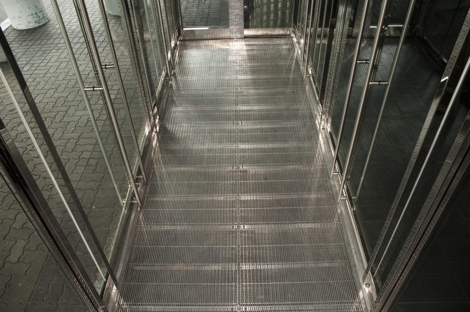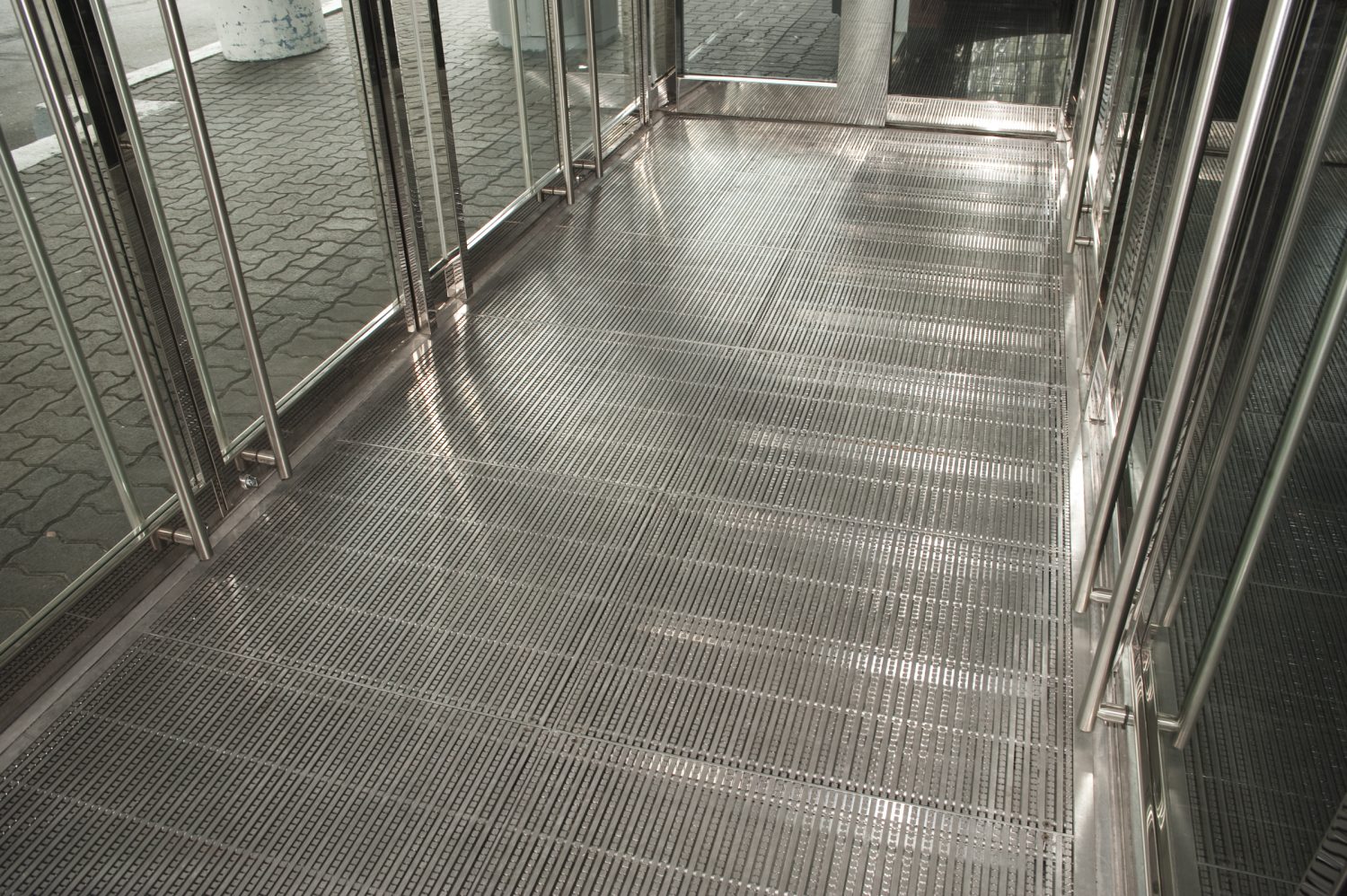 The CO-33 model is the result of combining the BA-1 and BSA-1 grilles, offering the best of both worlds. Installed in a glass vestibule, it captures and reflects natural light, creating a play of brilliance that brightens the entrance. Its polished aluminum finish catches the eye while standing up to everyday use, making every arrival a luminous and elegant experience. The CO-33 is more than just an entrance mat, it’s a statement of style that transforms your space into a vestibule where light itself becomes a design feature.